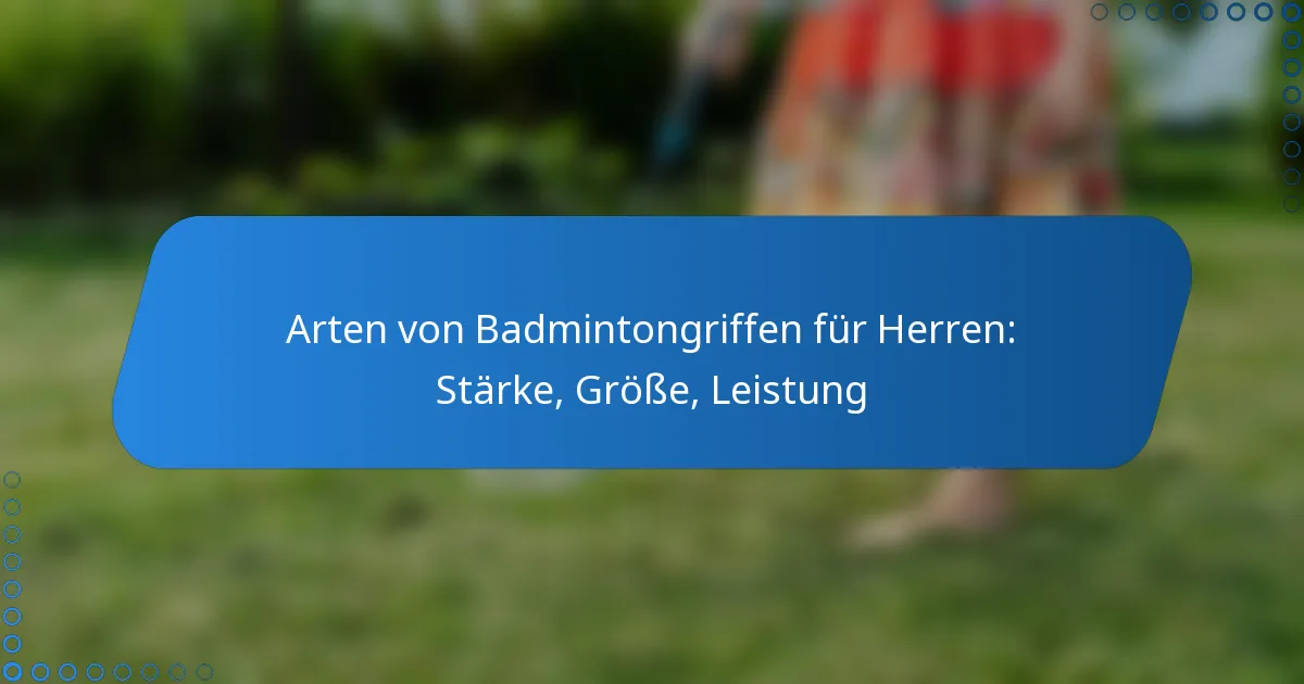 Im Badminton für Männer spielt die Wahl des Grifftyps – Vorhand, Rückhand oder spezialisierte Griffe – eine entscheidende Rolle bei der Verbesserung der Leistung, indem sie unterschiedliche Vorteile in Bezug auf Kraft und Kontrolle bietet. Die Griffstärke ist entscheidend für die Schussgenauigkeit und den Komfort, während die Auswahl der richtigen Griffgröße eine optimale Handhabung gewährleistet und das Verletzungsrisiko verringert. Das Verständnis dieser Elemente kann das gesamte Spielerlebnis erheblich verbessern.